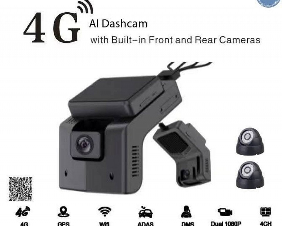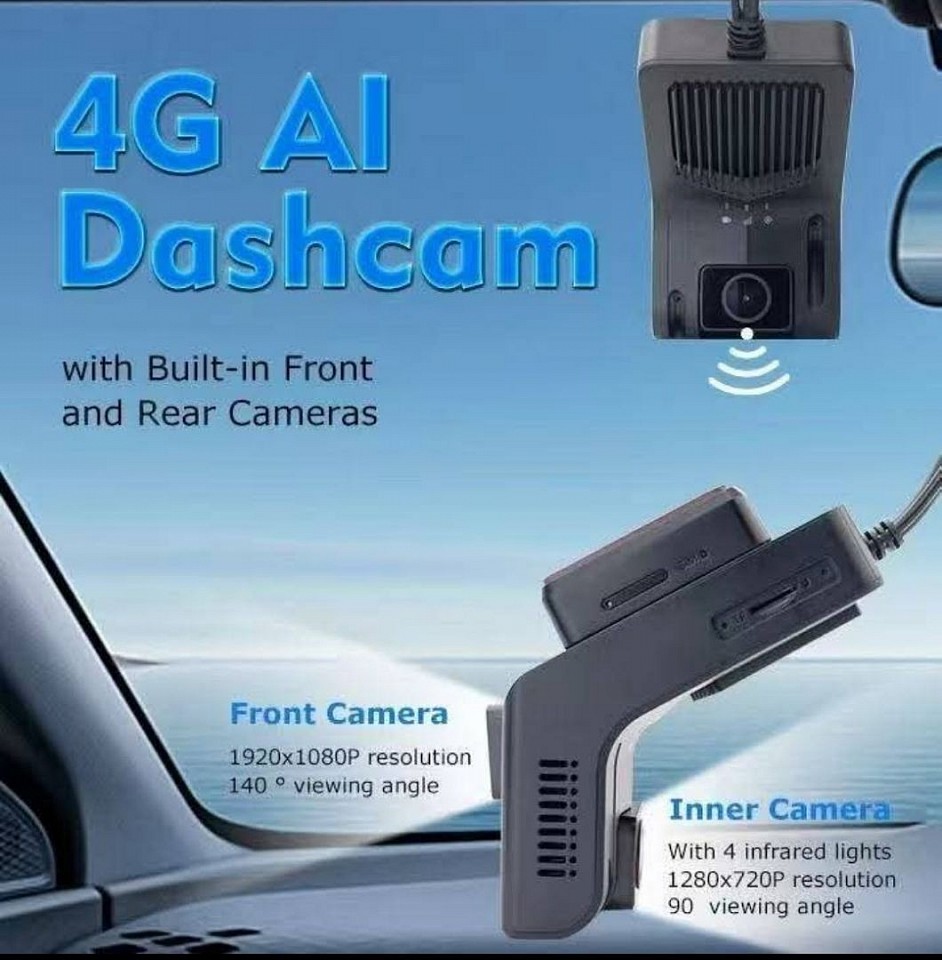 Check out this sleek, ultra-light dashcam packed with 4G and AI-powered software! It features a front camera with a wide 140° viewing angle and crisp 1920 x 1080P resolution, plus a rear camera with a 90° angle and 1280 x 720P clarity. It also includes 4 infrared LED lights, WIFI, and GPS. This smart, streamlined design gives drivers a clear, distraction-free view of the road ahead. Extra handy features like ADAS & DSM help monitor driver behavior with alerts for seat belt use, driver absence, camera blocking, smoking, and fatigue—all with voice prompts. Plus, 2 auxiliary video inputs let you add cameras to keep an eye on fuel tanks, cargo, or blind spot detection areas. With 4G and GPS, you get live viewing and precise vehicle tracking.
