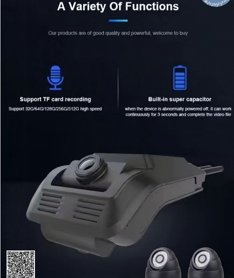This dash cam add-on features driver fatigue warnings, distraction alerts, seat belt reminders, driver absence detection, cellphone usage monitoring, and smoking detection. It is a compact yet effective device designed to support the monitoring of driving behavior.