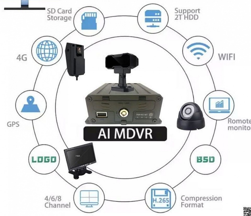 The MDVR and AI MDVR units provide a straightforward and efficient solution for connecting multiple auxiliary cameras to the primary Dashcam device.